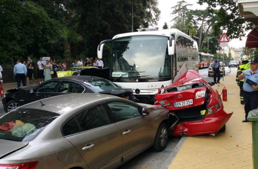 Čak 10 vozila (uključujući i autobus) oštećeno je u prometnoj nesreći do koje je došlo oko 12.30 u Ulici Maršala Tita kod hotela Bristol u Opatiji.