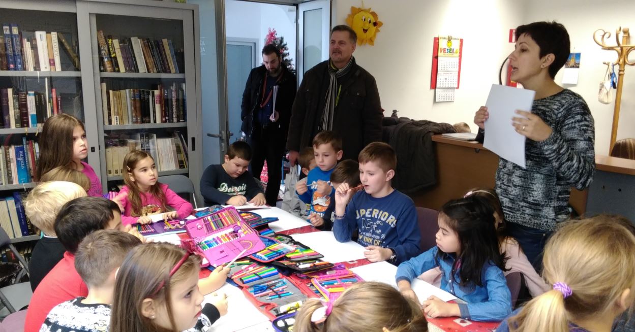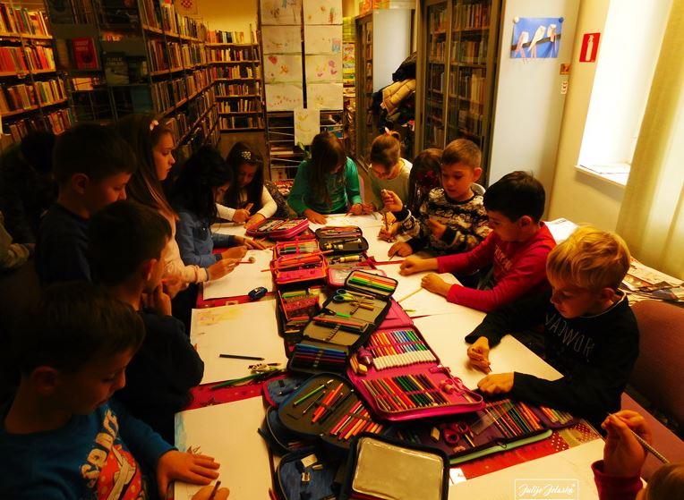 Nakon predstavljanja emotivne božićne priče o puhici Sari, koja odaje počast obiteljskim vrijednostima i zajedništvu, održana je i radionica stripa i karikatura. Učenici su se oduševili vještinom Julija Jelaske, koji je u veoma kratkom vremenu izradio desetak karikatura, koje je poklonio najmlađim posjetiteljima Knjižnice.
