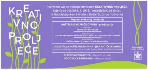 U ponedjeljak 09. travnja 2018. s početkom u 18 sati u Nadbiskupskom kaštelu u Kaštel Sućurcu održat će se svečano otvaranje manifestacije “Kreativno proljeće 2018.”. Nakon pozdravnih govora, prisutni će imati priliku poslušati kaštelanske priče o vinu, a predavanja će održati Ivan Šuta, Živko Skračić i Ante Vuletin nakon čega slijedi degustacija kaštelanskih vina i jela antičke kuhinje.