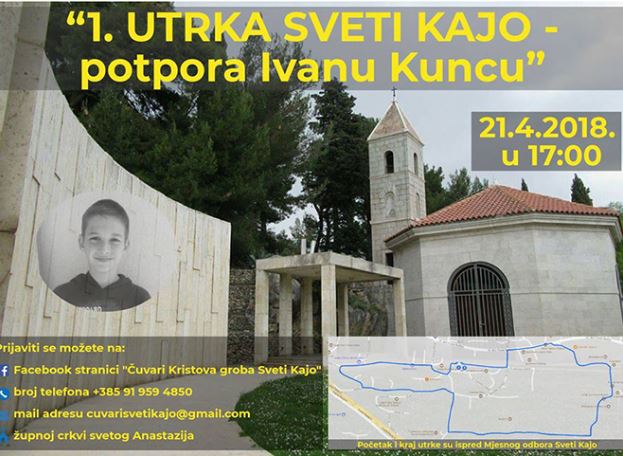 U subotu s početkom u 17 sati na području Solina, odnosno MO Sveti Kajo, održat će se humanitarna utrka za pomoć dječaku Ivanu Kuncu, osnovnoškolcu i sportašu kojemu je koncem ožujka 2018. godine otkriven tumor na mozgu.