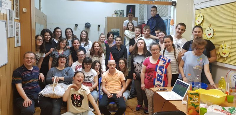 okupljeni u Školskom volonterskom klubu Graditelji sreće, u srijedu su, 23. svibnja, posjetili udrugu Down 21 te pripremili zabavni program s korisnicima udruge. Pekle su se palačinke i kokice, gledalo se i navijalo za Hajduka, a vrhunac večeri bile su karaoke. Korisnici udruge, jednako kao i učenici, bili su oduševljeni zajedničkim druženjem koje je potrajalo do kasnih večernjih sati.