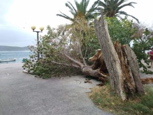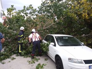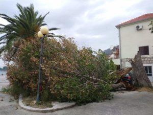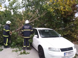 Zbog udara bure koja je počela puhati u proteklih sat vremena puknulo je jedno staro stablo u Kaštel Sućurcu te se isto srušilo na parkirani automobil. Vatrogasci su izašli na teren te otklanjaju ostatke stabla sa automobila.