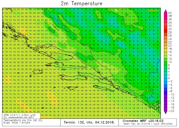 Prema današnjim prognostičkim materijalima, u subotu nas očekuje promjena vremena. Od jutra novo jače naoblačenje, pa će danju biti kiše, pljuskova i grmljavine. Navečer će kiša u planinama okrenuti na snijeg. U noći na nedjelju razvedravanje. Ujutro će puhati umjereno do jako jugo, navečer je moguća jaka do olujna tramontana. Danju još relativno toplo, navečer osjetno zahlađenje.