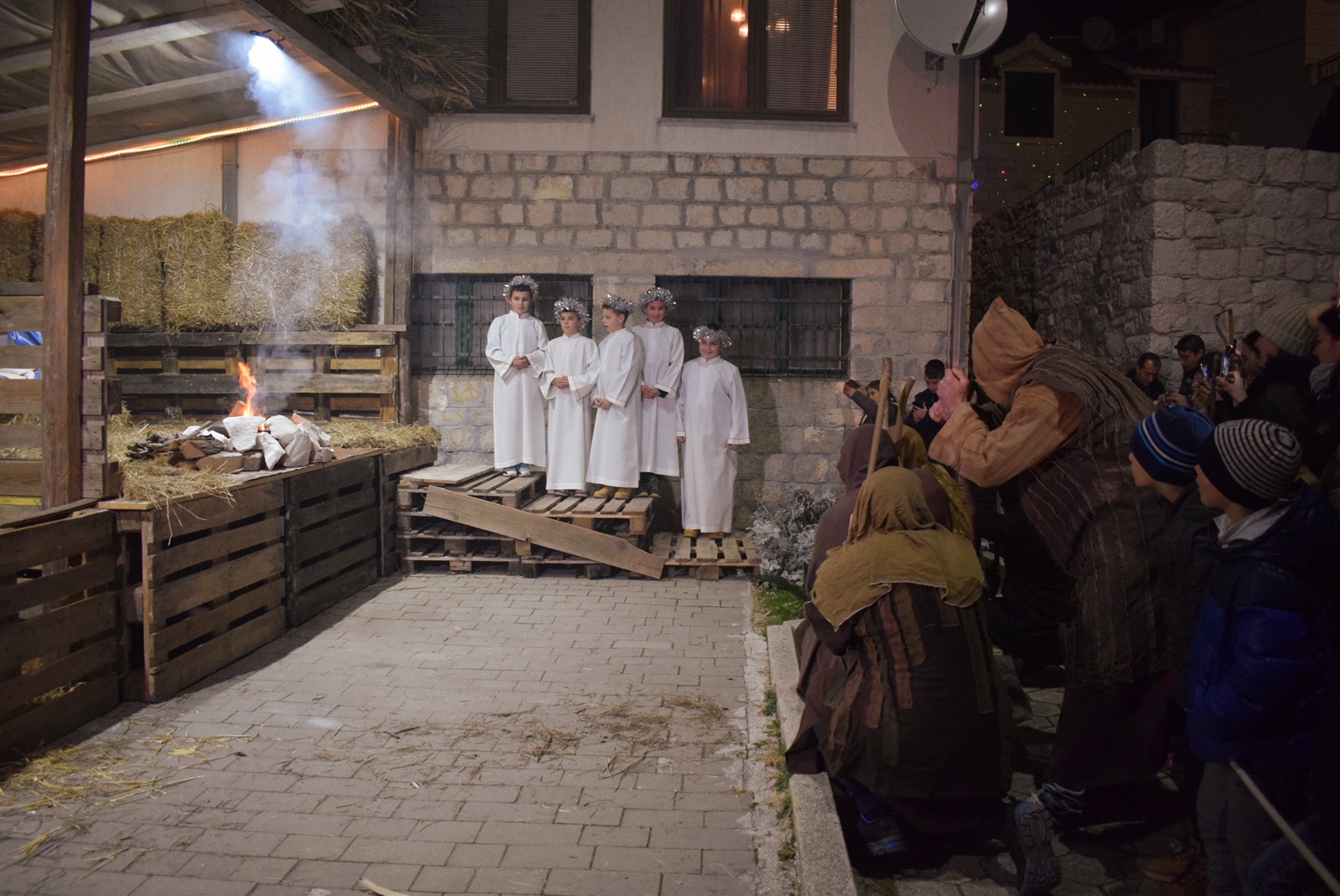 -”Božić i jest radost i pjesma života. Želja mi je kao župnika ove župe da na jedan vanjski način uprizorenja živih jaslica našim ljudskim srcima koja su opterećena svim i svačim zaigra ta radost novorođenog kralja koji se daruje u jednostavnosti i siromaštvu same betlehemske štalice. Betlehem znači ”kuća kruha”, mjesto kruha a Isus sam za sebe kaže ja sam kruh koji je s neba sišao. I taj kruh nam se daruje i danas pod prilikama misnih otajstava koji su nama prijeko potrebni, poručio je don Darijo Čorić.