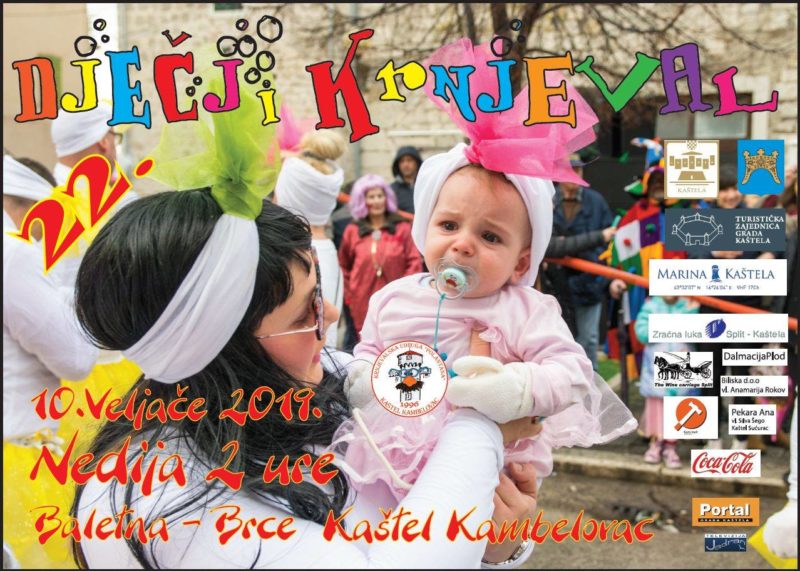 Maškarana povorka krenuti će od Baletne škole do Brca u Kaštel Kambelovcu. U povorci će veselo koračati oko 600 mališana iz vrtića grada Kaštela, te okolnih gradova Trogira, Solina, Vrsina, Splita te iz Osnovnih škola iz Kaštela, Dječjeg doma Miljenko i Dobrila, KUD Karol Wojtyla, Mali Split Srdelice, Solinski bubamarci.