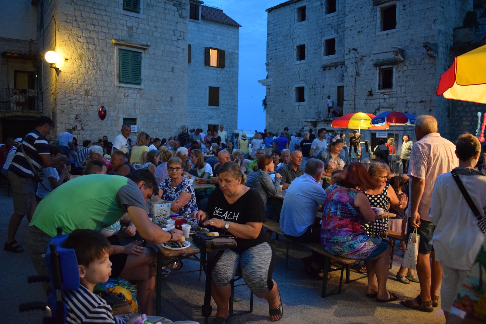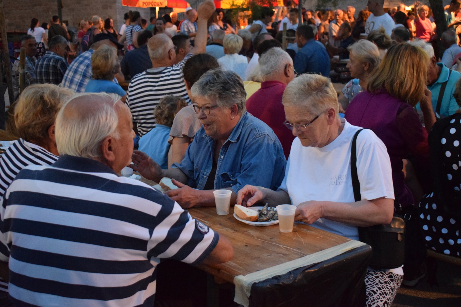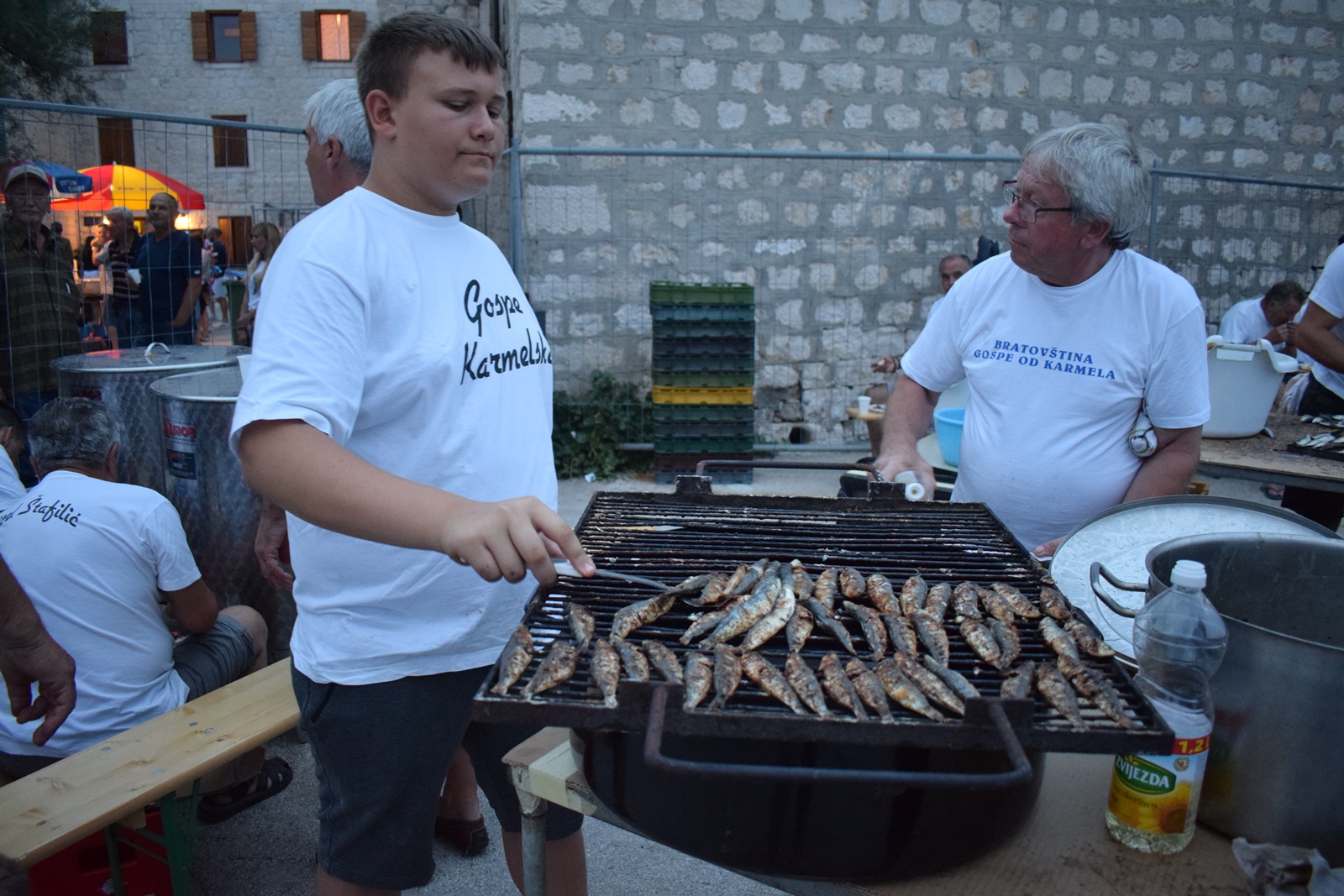 Već tradicionalno u žežin Gospe  Karmelske , Bratovština Gospe od Karmela organizira pučku feštu na Igrišću u Kaštel Štafiliću. Ove godine pripremili su 300 kg srdela i nekoliko stotina litara vina koje su podijelili mještanima i velikom broju turista koji su strpljivo čekali u redu za svoju porciju. Vrijedne ruke mještanki napravile su fritule kojima su se na kraju svi i zasladili a za dobru atmosferu na plesnom podiju pobrinula se grupa ”Maestrali ”.