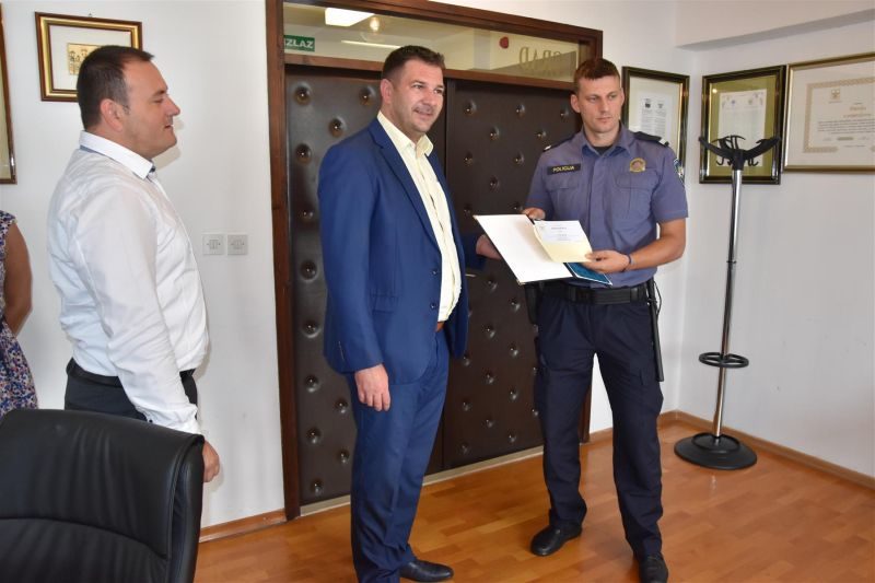Najboljem policajcu čestitao je gradonačelnik Denis Ivanović zajedno sa svojim zamjenicima Jadrankom Matok Bosančić i Grgicom Benutićem te mu uručio zahvalnicu i bon u iznosu od 2 500 kuna.