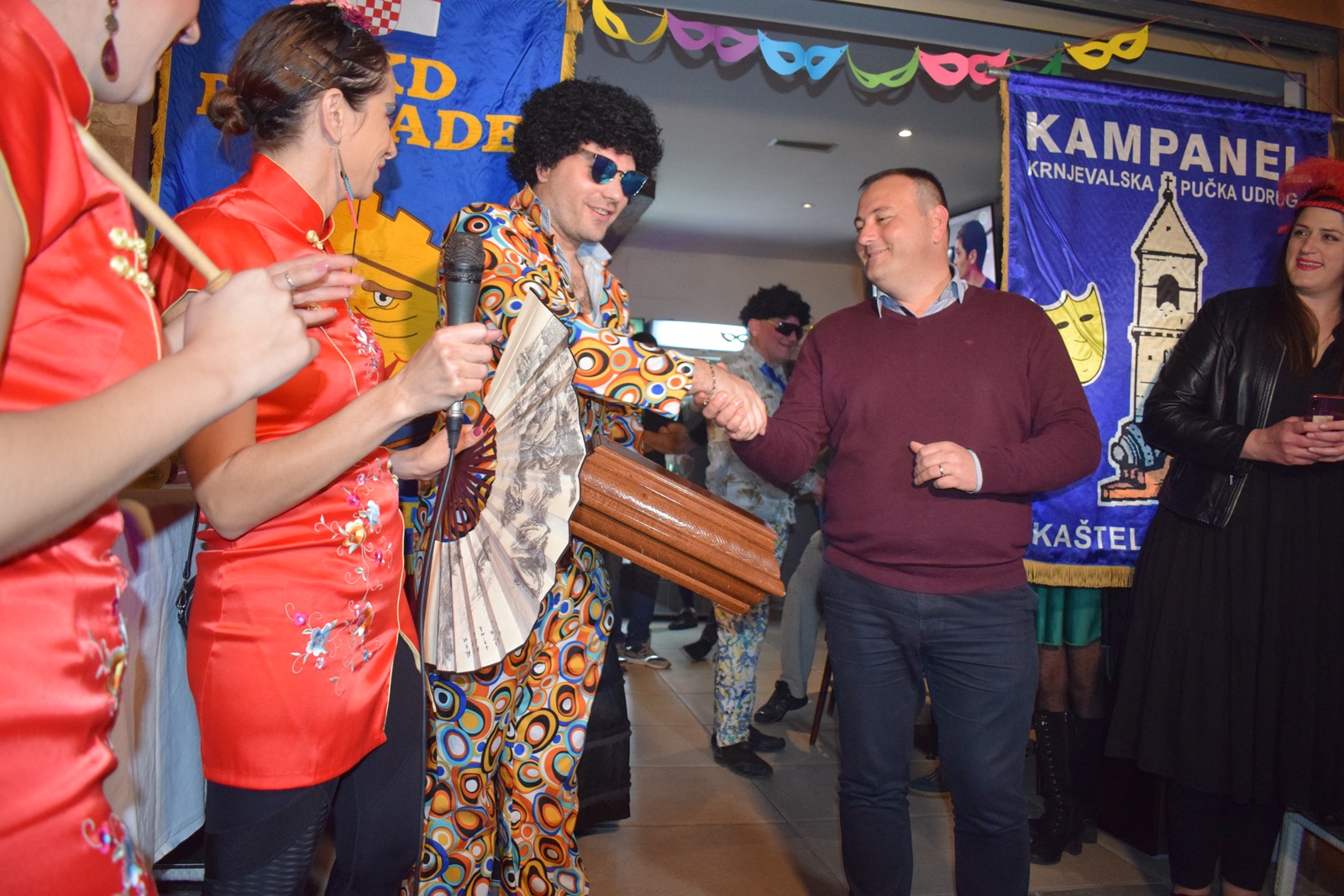 I tako su se članovi ove dvije krnjevalske udruge nastavili zabavljati do dugo u noć uz pjesmu i ples te najavili još jedno najluđe doba u godini uz poznati #teškojeukaštelimaostaritanepoludit.