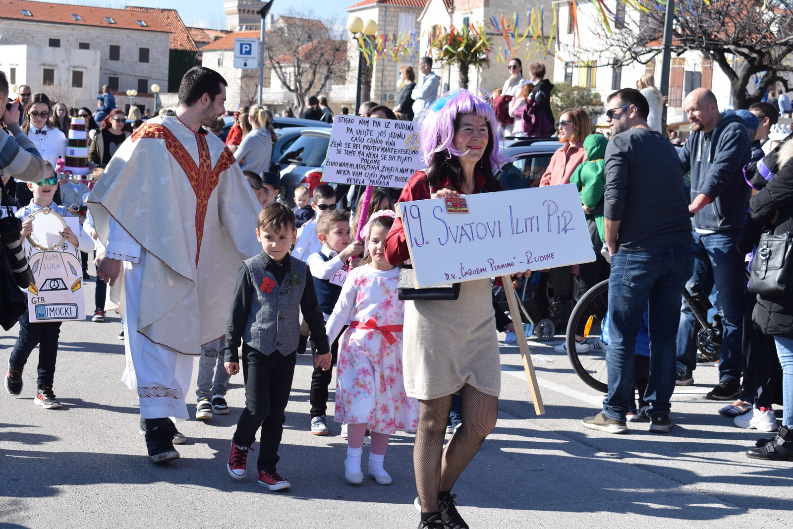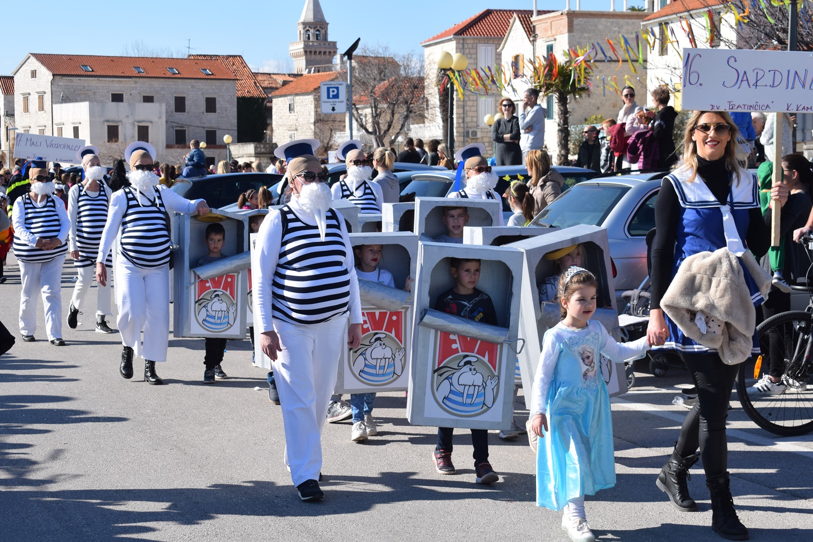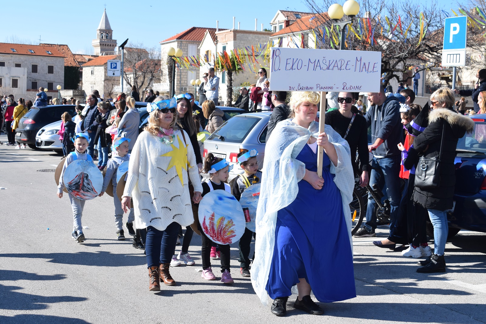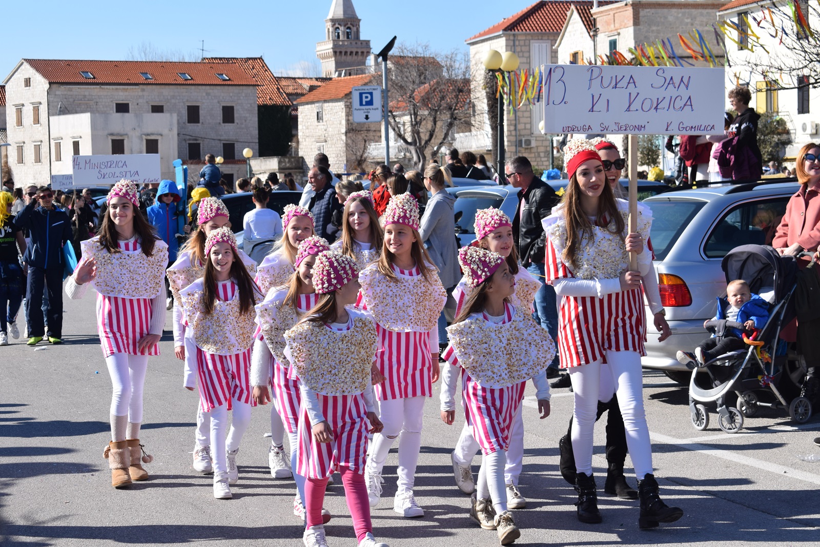 Ovu sunčanu nedjelju proveli smo uživajući u dječjem krnjevalu u Donjim Kaštelima. U organizaciji KKU Poklade održan je 39. Dičji krnjeval. Povorka je krenula u 13:00 sati iz Lucijinog puta , preko rive do parkinga na bivšem Plavom Jadranu, gdje je održan prigodni program za sve male maškarice te su im organizatori podijelili krafne i sokiće. U današnjoj povorci sudjelovala su djeca iz kaštelanskih vrtića i Osnovnih škola. Bilo je tu malih vatrogasaca, zdravoljubaca, sardina, likova iz bajki puževa te mnogih drugih. Na kraju programa  osuđen je i spaljen  krnjo koji je ove godine Parazit.