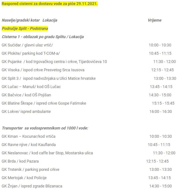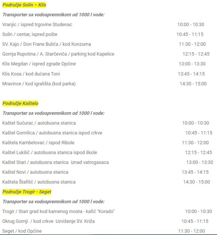 Alternativna opskrba vodom za piće organizira se putem autocisterni i vodospremnika čiji je raspored na web stranicama ViK-a.