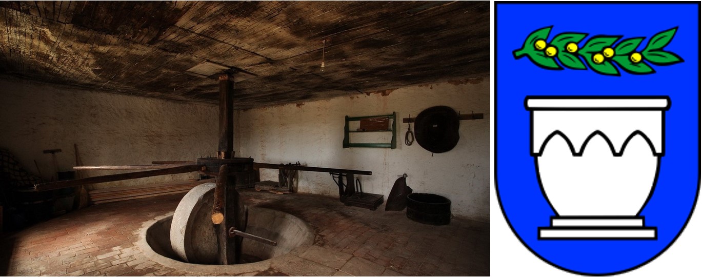 Stari kameni mlin za masline na otoku Lošinju – Ćunski mlin (lokalni naziv „Torać“); Važnost masline za žiteljstvo hrvatske obale Jadrana očituje se i u heraldičkoj simbolici – tako se u aktualnom grbu grada Vodica u Šibensko-kninskoj županiji uočava upravo grančica „hraniteljice“ masline sa šest zlatnih plodova (izvor: FAME)