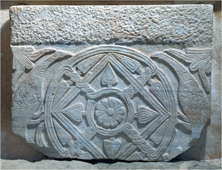 Riječ je o ugrađenoj ploči koja nije sačuvana u izvornoj cjelini, a prvotni plutej s motivom dna pletene košare ukrašen je florealnim detaljima, stiliziranim cvjetovima ljiljana u uglovima te listovima bršljana prepletenim s troprutim vrpcama i motivom ruže u sredini. Po specifičnostima ukrašavanja zaključuje se kako pripada 9. stoljeću. Teško je reći iz koje je točno starohrvatske crkve ploča prenešena u crkvu Sv. Bartula i tu iznova korištena, ali sigurno je da potječe iz doba koje kralju Zvonimiru prethodi više od dvjesto godina!