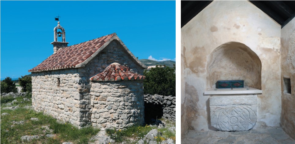 Crkva Sv. Bartula na Resniku u Štafiliću i pogled na svetište crkve nakon uređenja (R. Bužančić: „PLUTEJ IZ CRKVE SV. BARTULA NA RESNIKU“, 2017.)