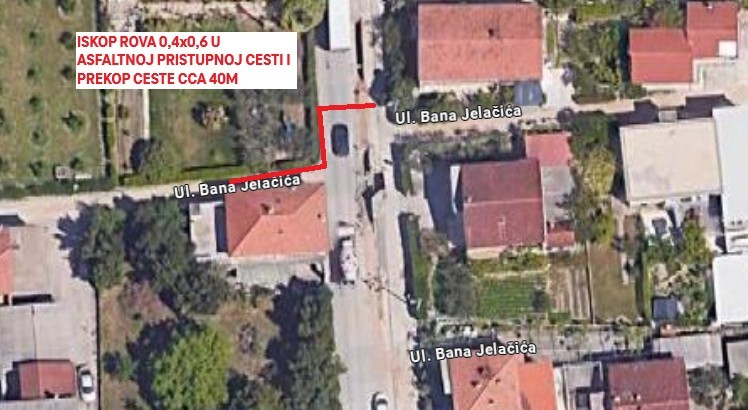 Zbog planiranih radova iskopa, promet će biti usporen postavljanjem prometne signalizacije prema odobrenom elaboratu privremene regulacije prometa.