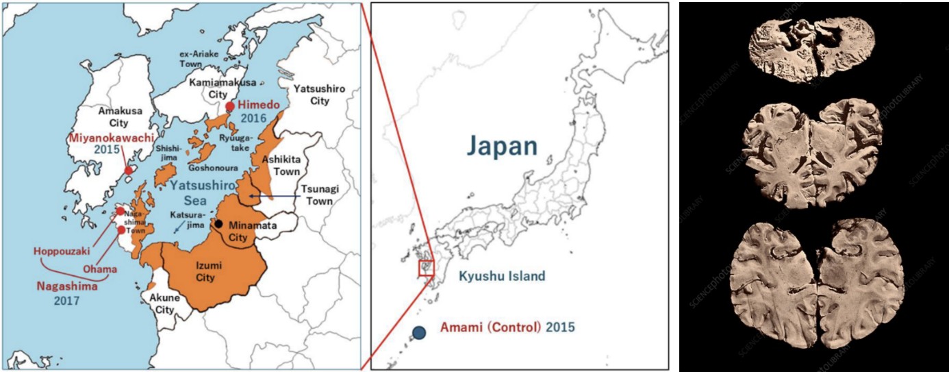 Simbol modernog industrijskog onečišćenja u svjetskim razmjerima je zasigurno japanski zaljev Minamata, smješten na zapadnoj obali Kyűshűa – najjužnijeg otoka zemlje izlazećeg Sunca. Naime, obližnji grad Minamata je uz ribarsku luku bio i lokacija snažne kemijske industrije, koja je svoje opasne posljedice iskazala 50-ih godina prošloga stoljeća. Tada se među mjesnim ribarima pojavila teška neurološka bolest izazvana prehranom školjkašima koji su bili zagađeni metiliziranom živom iz ispuštanih otpadnih voda.