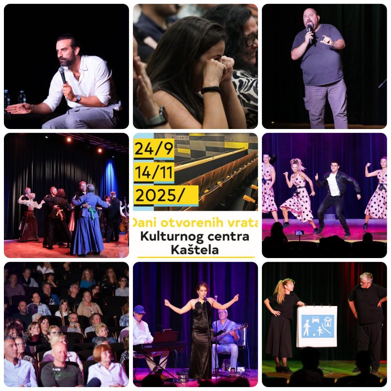 Ovogodišnji „Dani otvorenih vrata“ Kulturnog centra Kaštela dokazali su da Kaštela žive kulturu i da novoobnovljeni prostor u Kaštel Lukšiću postaje jedno od važnijih okupljališta za sve generacije. Tijekom više tjedana, od kraja rujna pa do polovine studenog, posjetitelji su imali priliku uživati u kazališnim predstavama, stand-up večerima, filmskim projekcijama, koncertima, radionicama te programima namijenjenima djeci i mladima.