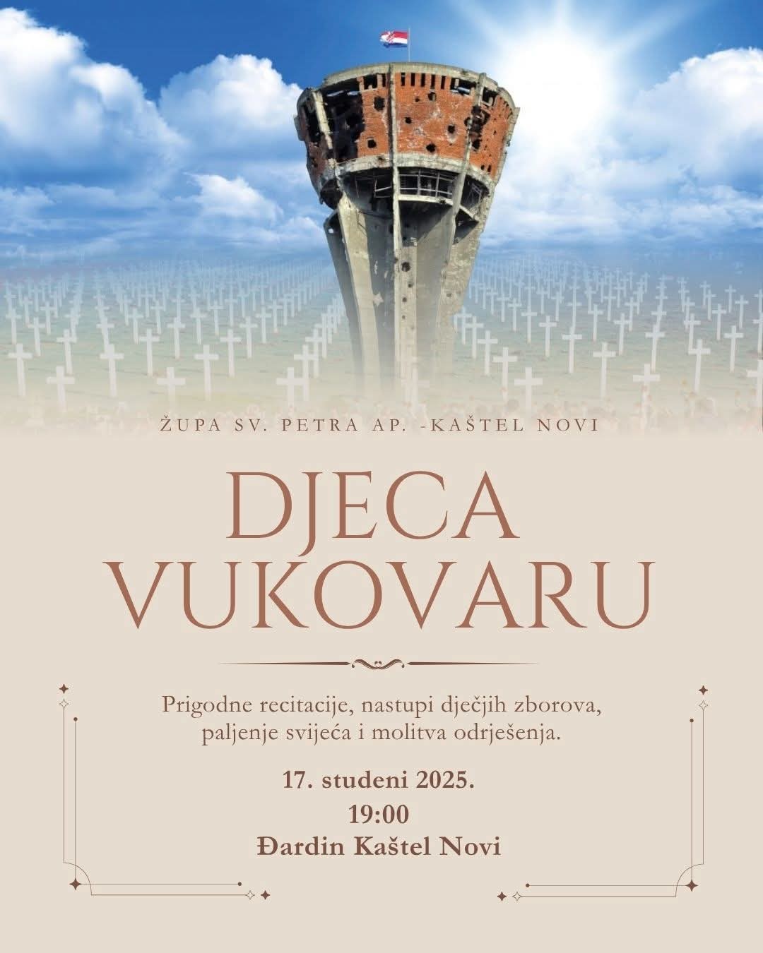 Župa sv. Petra ap. iz Kaštel Novog ove godine organizira posebno molitveno-komemorativno okupljanje pod nazivom „Djeca Vukovaru“, posvećeno žrtvama Vukovara i Škabrnje te svima koji su dali život za slobodu Domovine.Program uključuje prigodne recitacije, nastupe dječjih zborova, paljenje svijeća i molitvu odrješenja.