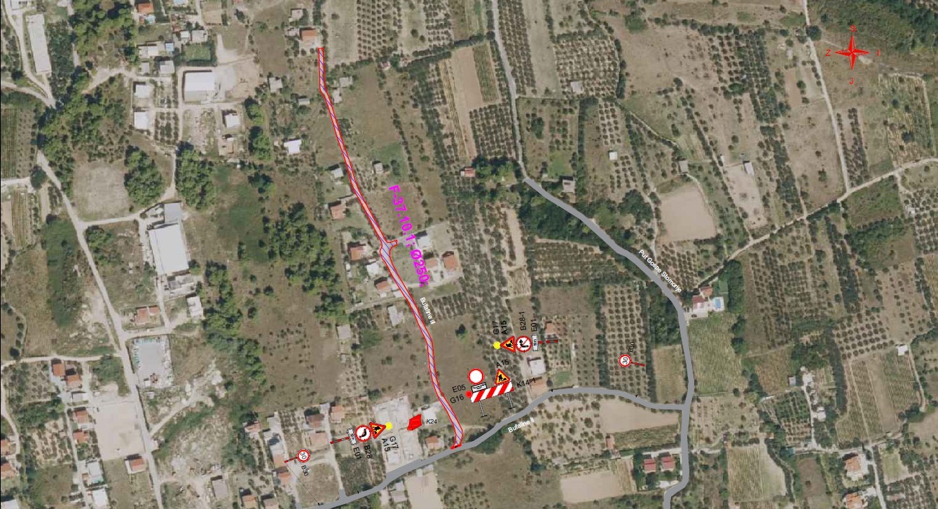 Promet će se u zoni radova odvijati prema privremenoj regulaciji prometa, uz napomenu da će djelomično biti onemogućen prolaz vozilima.