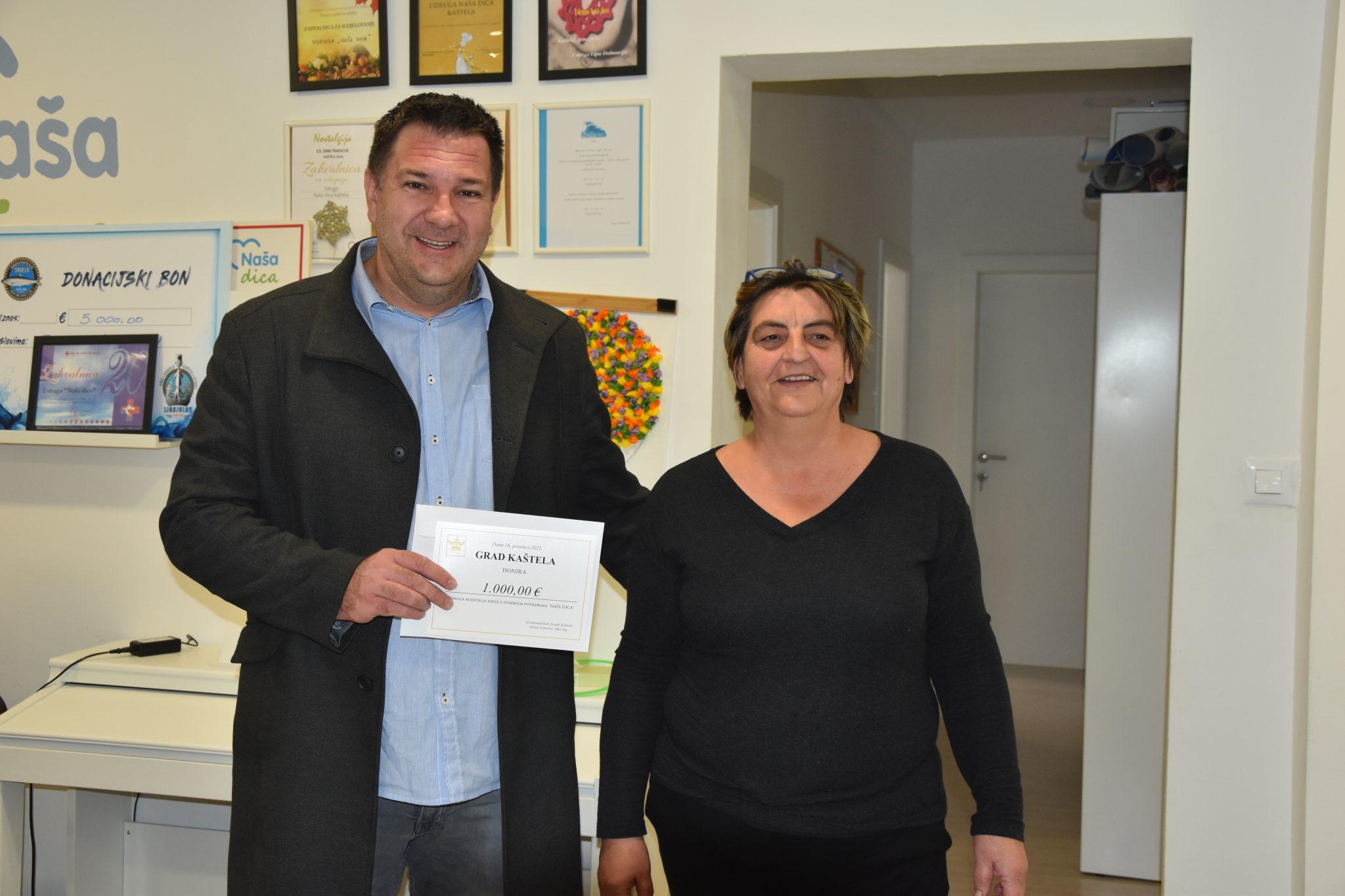 U Udruzi Naša dica gradske čelnike dočekala je potpredsjednica udruge Vedrana Šarić sa suradnicima. Istaknula je kako je udruga upravo proslavila 18. rođendan te ulazi u novu fazu razvoja.
