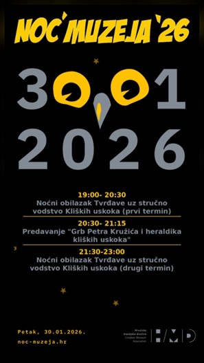 Izlaganju pod naslovom „Grb Petra Kružića i heraldika kliških uskoka“, koje će se održati na tvrđavi Klis (prostorije Topničke vojarne), prethodit će noćni obilazak tvrđave uz stručno vodstvo “Kliških uskoka“ s početkom u 19:30 h, dok će isti program obilaska tvrđave biti nastavljen i nakon održanog izlaganja (u 21:30 h). Programom Noći muzeja 2026. Škola heraldike će ujedno započeti s ukupno petim ciklusom svojih aktivnosti, dok su teme izlaganja, prezentacija i radionica održanih u Klisu, Splitu, Solinu, Kaštelima i Segetu tijekom proteklog desetljeća bile sljedeće:
